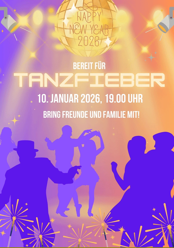 Das nächste Tanzfieber findet am 10. Januar 2026 statt. Wir starten ganz normal ohne besonderes Thema in das neue Jahr.